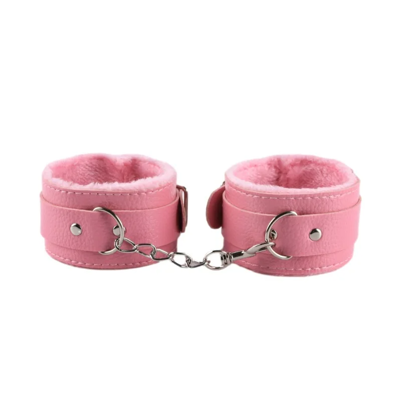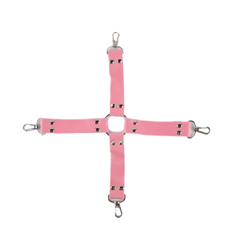 Deri Pembe Harnes Fantazi 7'li Kelepçe Kırbaç Fetiş Seti