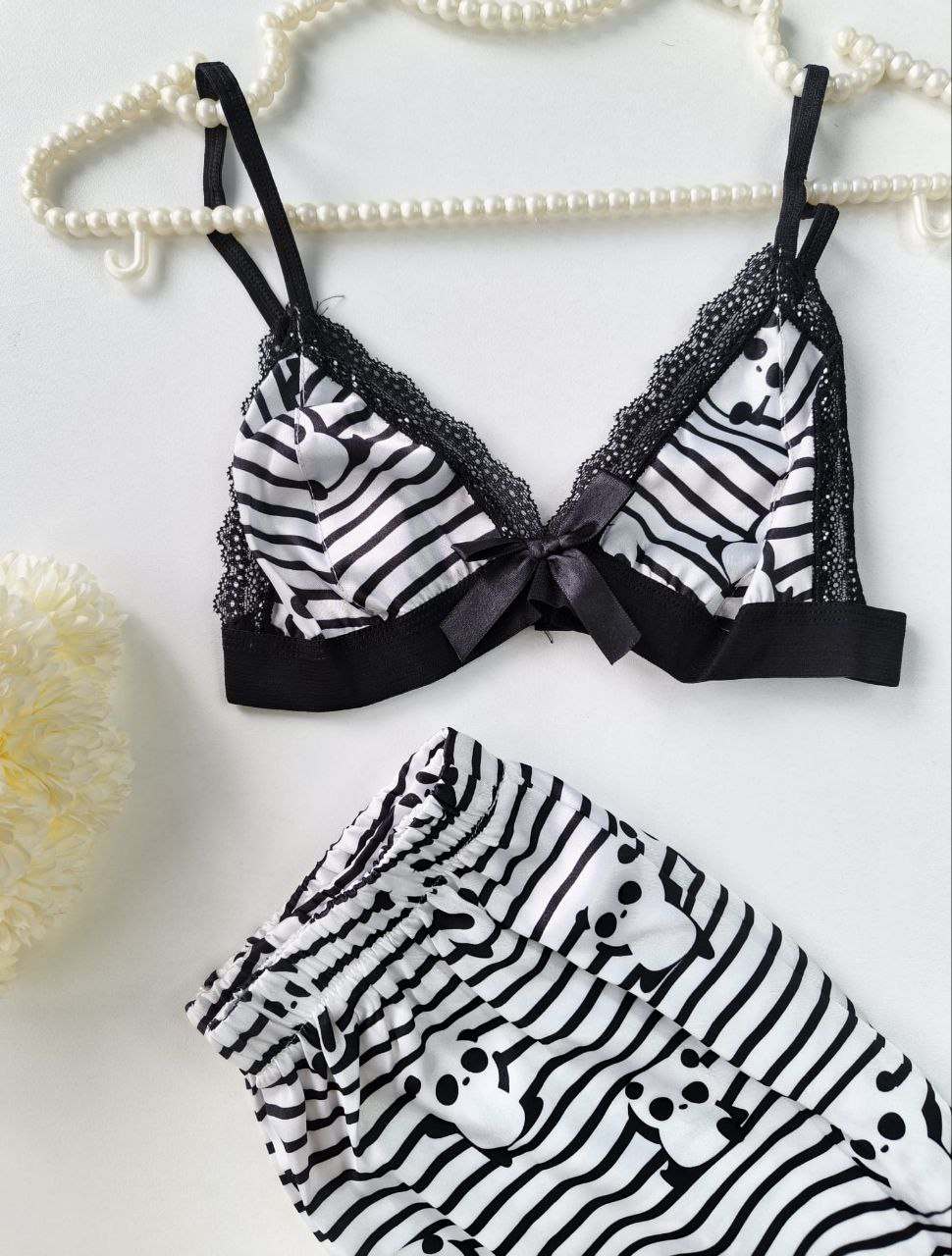 Pandalı askılı şortlu takım